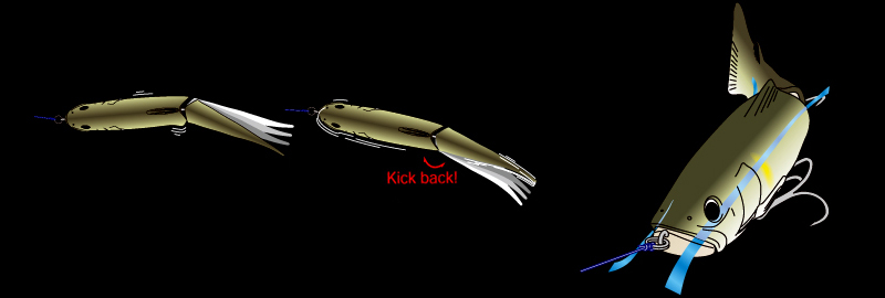 Como resultado, seu movimento sinuoso transmite incrivelmente cada uma das sensações para sua vara, induzindo os predadores a atacar de forma decisiva.