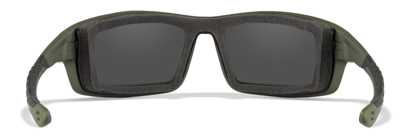 O PRODUTO INCLUI: Selo removível para cavidade facial, bolsa de microfibra CAPTIVATE, tira elástica T-Peg, estojo preto tipo concha com zíper, pano de limpeza com logotipo Wiley X, corda de guia com alças de borracha